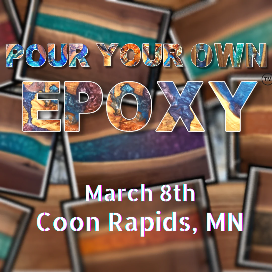 These boards will be made with black walnut and epoxy. You will choose your own colors when you arrive. Attendees will have the choice between making a Lazy Susan or charcuterie board.