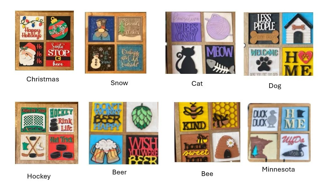 -Eight different sets of four interchangeable signs to choose from OR a cute snowman for the Holidays!