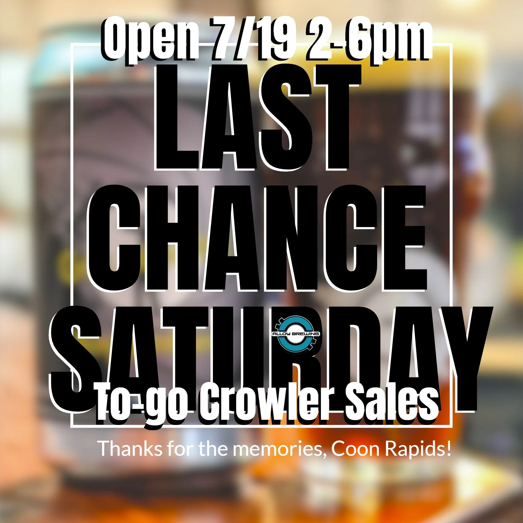 Crowlers are $2 off today - we'll be open for to-go sales only again from 2-6pm.